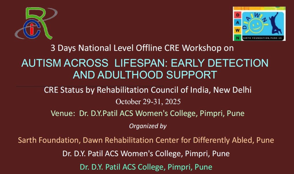 On behalf of Sarth Foundation Dawn Rehabilitation Center Pune, Dr. D.Y. Patil ACS Women’s College Pimpri, Dr. Sunil Saini (Director IAHRW Delhi), Mr. Santosh Munde (Nav Kshitij Pune), Mr. Suresh Rathod (Yavatmal), Mr. Kirti Nair, Mr. Ashwin Nair, and our entire team – heartfelt thanks to all participants and resource persons!